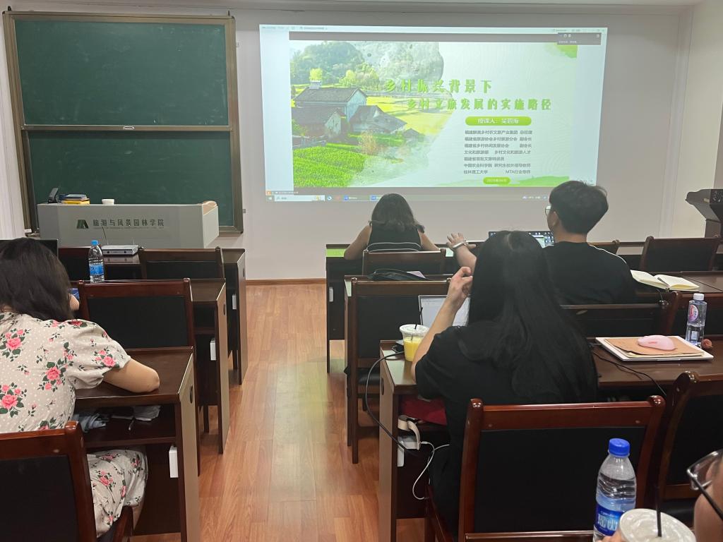 为积极响应乡村振兴战略,进一步提升学生对乡村文旅产业的专业认知与实践能力,6月21日晚上,福建醉美乡村旅游投资有限公司总经理、福建省旅游协会乡村旅游分会副会长吴泗海先生,通过线上方式在屏风校区7409教室为学院2024级MTA学生带来了一场题为“乡村振兴背景下,乡村文旅发展的实质路径”的专题讲座。