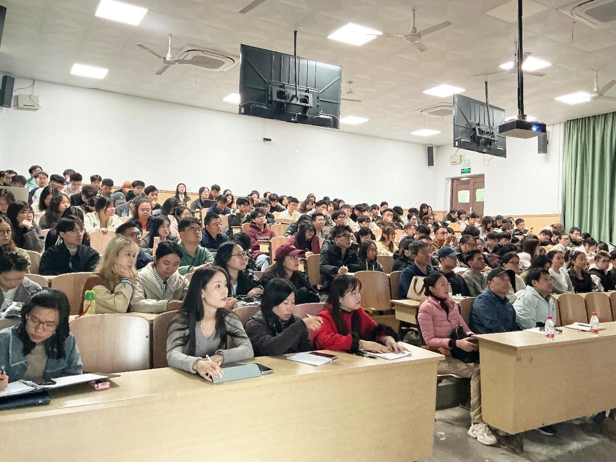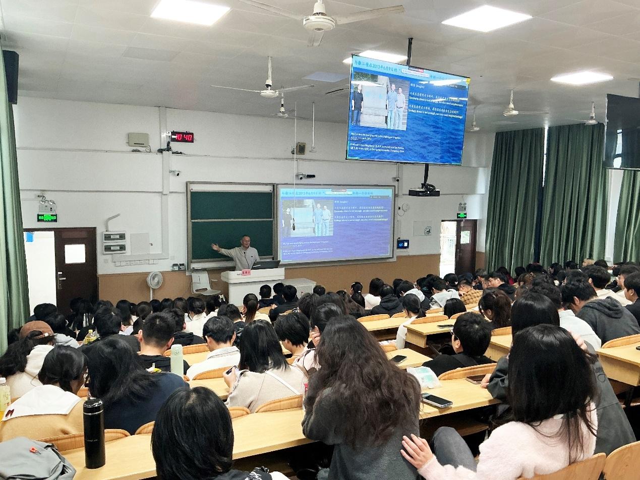 当日上午,象伟宁以“在生态文明时代,向生态实践智者们学习:爱智慧,崇实践,善研究”为题,作专题讲座。学院教师及本科、研究生共200多人参会。作为生态智慧、景观生态学与可持续发展领域的知名学者,象伟宁在报告中系统阐述了生态实践智慧所涵盖但不限于的六大核心能力:社会生态实践洞察力、道德力、知行融合力、应变力、反思力与研究力;提出并解析了四种典型的研究与实践范式:玻尔-福勒范式、巴斯德-麦克哈格范式、约翰逊范式、爱迪生-李冰范式,为在座师生提供了多元的思维框架与方法论启示。讲座上,他结合四位中外生态实践智者的生动案例,深刻阐释了这些生态智慧对于当代人在生活与工作中的重要价值。整场讲座视野宏阔、思想深刻,激发在座师生对生态智慧与实践路径的深入思考。