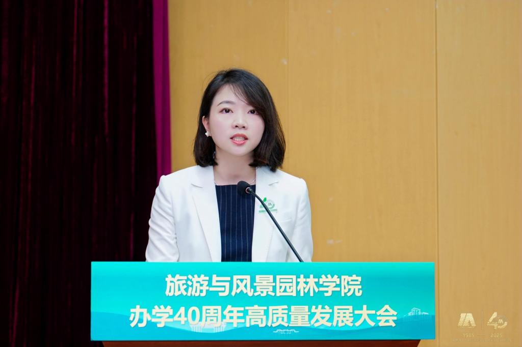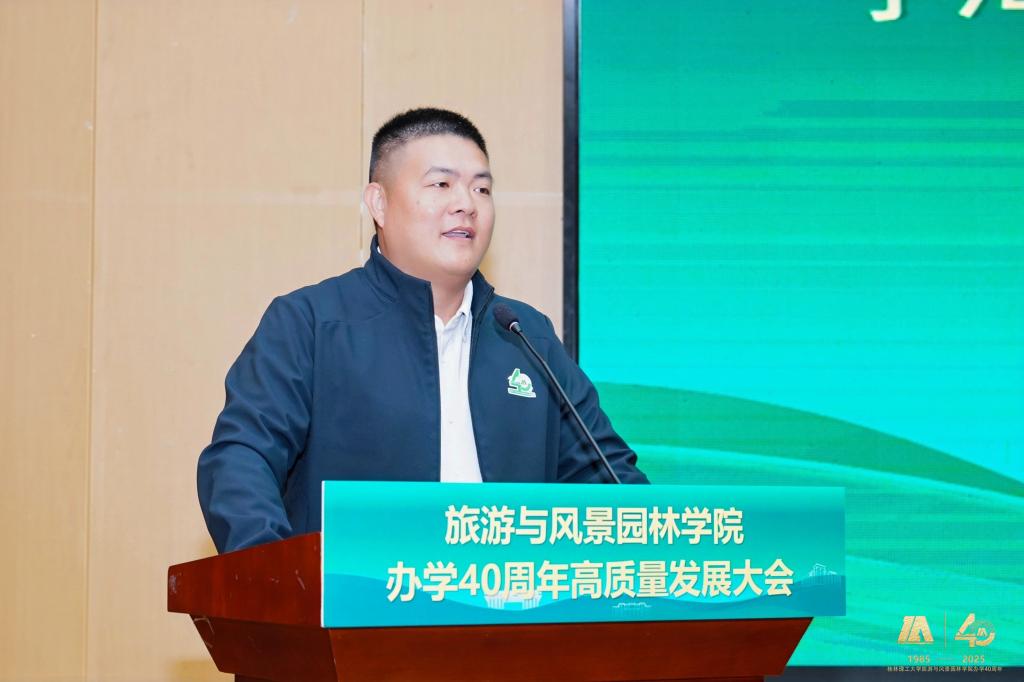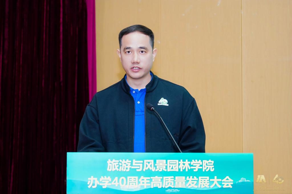 大会还邀请了多位校友代表发言。1985级校友李政敏、1995级校友阚如良、1994级校友曾垂华、1996级校友李毅艺、2010级校友张婷玉等分别发言,校友们分享了在校学习的美好回忆和毕业后的奋斗历程,表达了对学院的感激之情和美好祝愿。学院智慧酒店管理系教师黄燕玲和2025级风景园林专业博士生王磊作为在校师生代表发言,展现了学院师生接续奋斗、勇攀高峰的精神风貌。