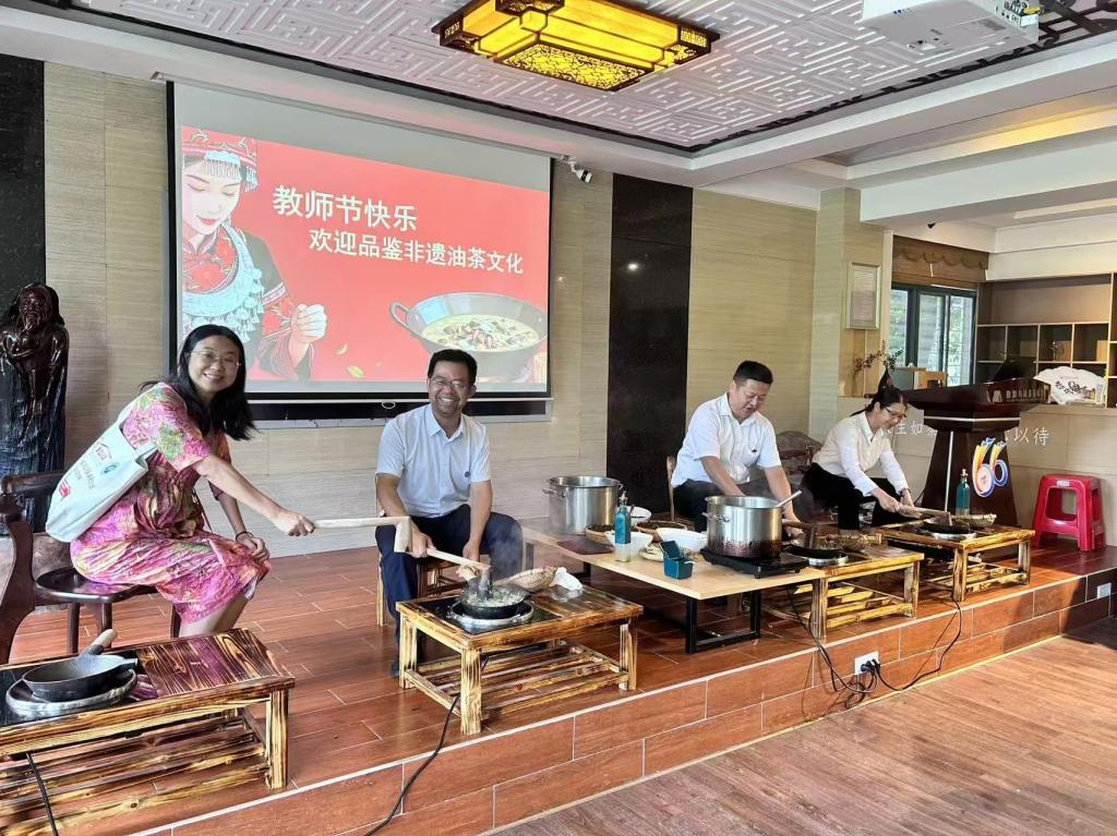 为庆祝第41个教师节,丰富教职工的业余生活,增强学院凝聚力,弘扬非遗油茶文化,我院于9月10日在雁山茶艺室组织开展了“品鉴非遗油茶文化”活动。