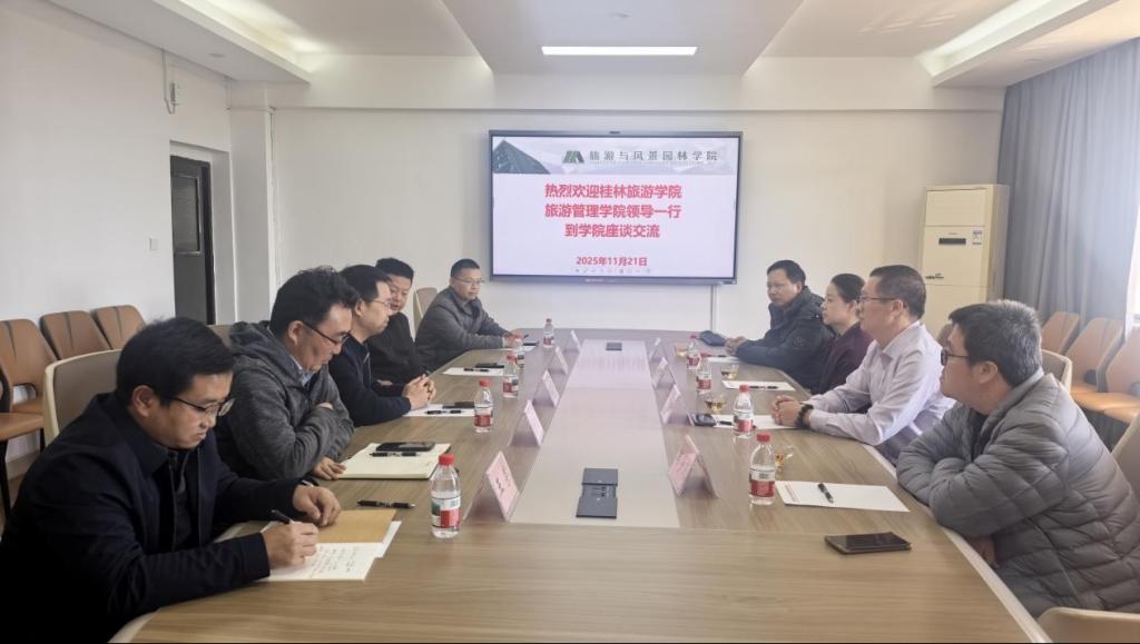 11月21日,桂林旅游学院旅游管理学院领导班子莅临我院交流,学院党委书记王璐、院长郑文俊、副院长胡金龙、副院长王荣及院长助理周茂杰在雁山校区4509会议室热情接待了来访客人,双方围绕多领域合作展开深入座谈。