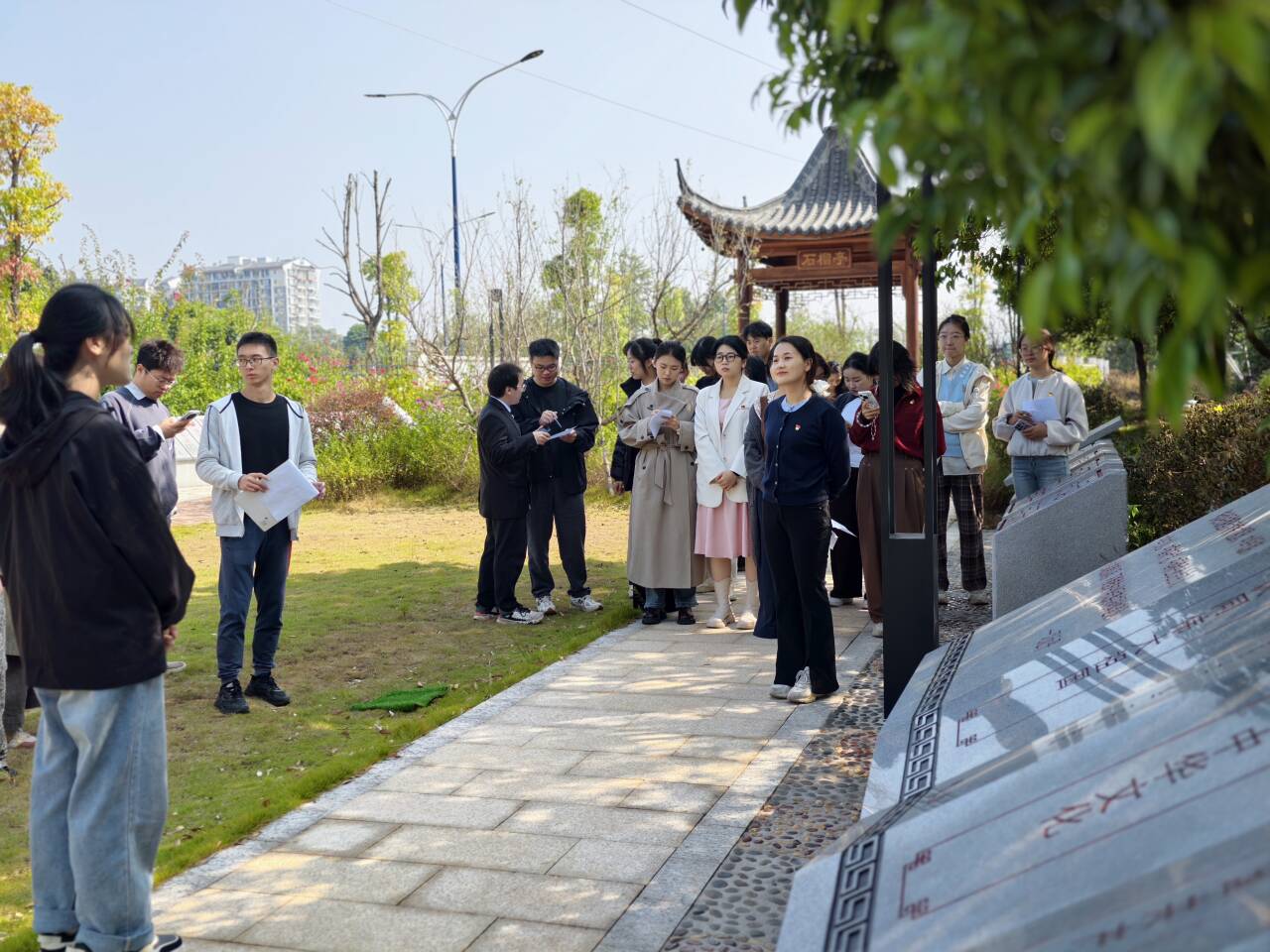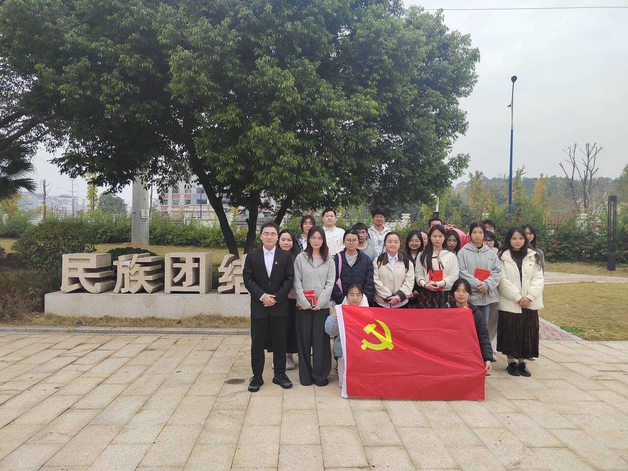 为做好民族团结进步教育工作,铸牢中华民族共同体意识,2025年10月,学院党委分批次组织师生党员在学校民族团结园开展民族团结进步宣传主题教育活动。