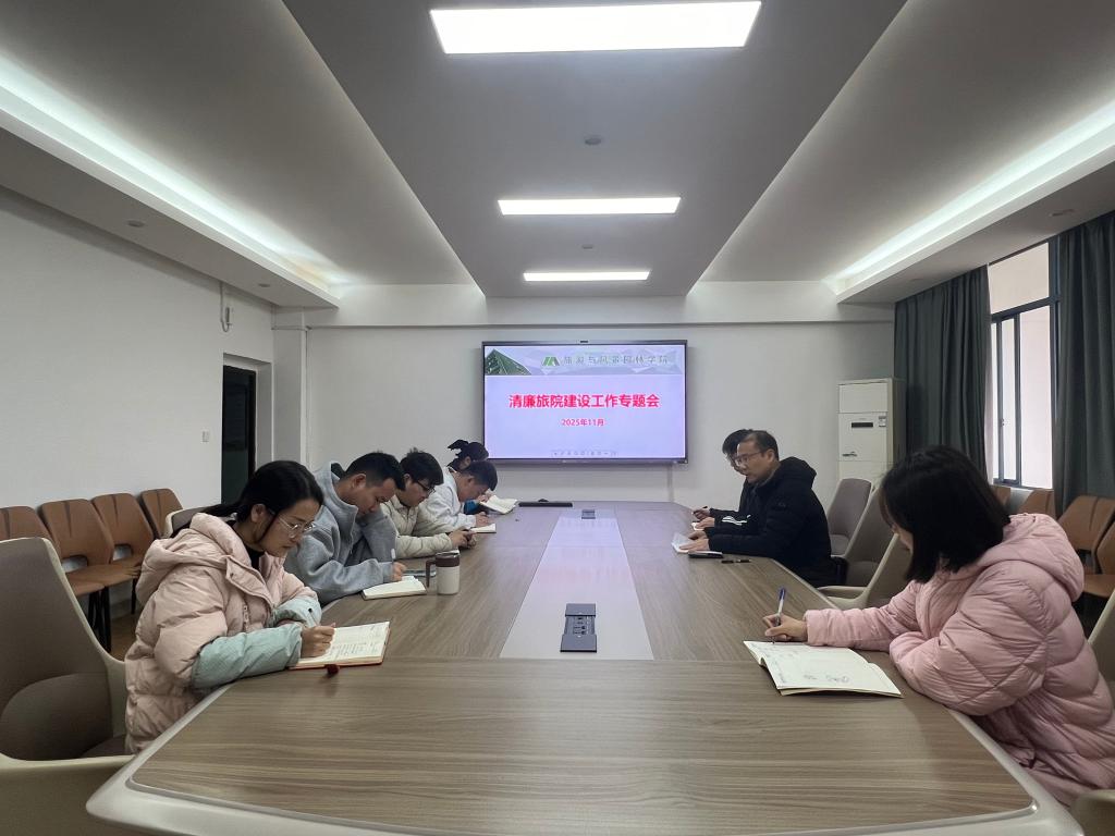 11月13日,学院召开清廉旅院建设工作专题会议,本次会议由学院党委副书记罗义淞主持,学院纪委委员及辅导员参加会议。