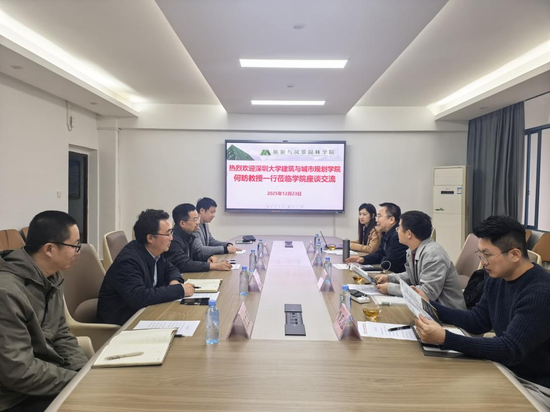 12月23日下午,深圳大学建筑与城市规划学院风景园林系主任何昉教授一行到访我院,开展学术交流与调研活动。学院院长郑文俊、副院长胡金龙、风景园林教研室主任徐孟远、实验室主任谭立国参加了交流座谈。
