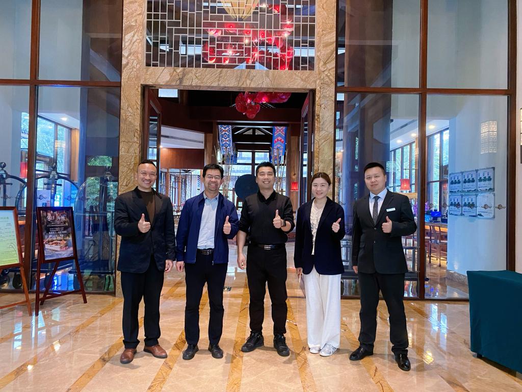 3月27日下午,学院院长郑文俊教授带队赴阳朔河畔度假酒店开展校企合作交流。酒店管理教研室主任王志文、副主任阳雯参加交流。广西旅发集团桂林投资公司副总经理潘东文,广旅南宁饭店集团、阳朔河畔度假酒店总经理苗松等接待并参加座谈。