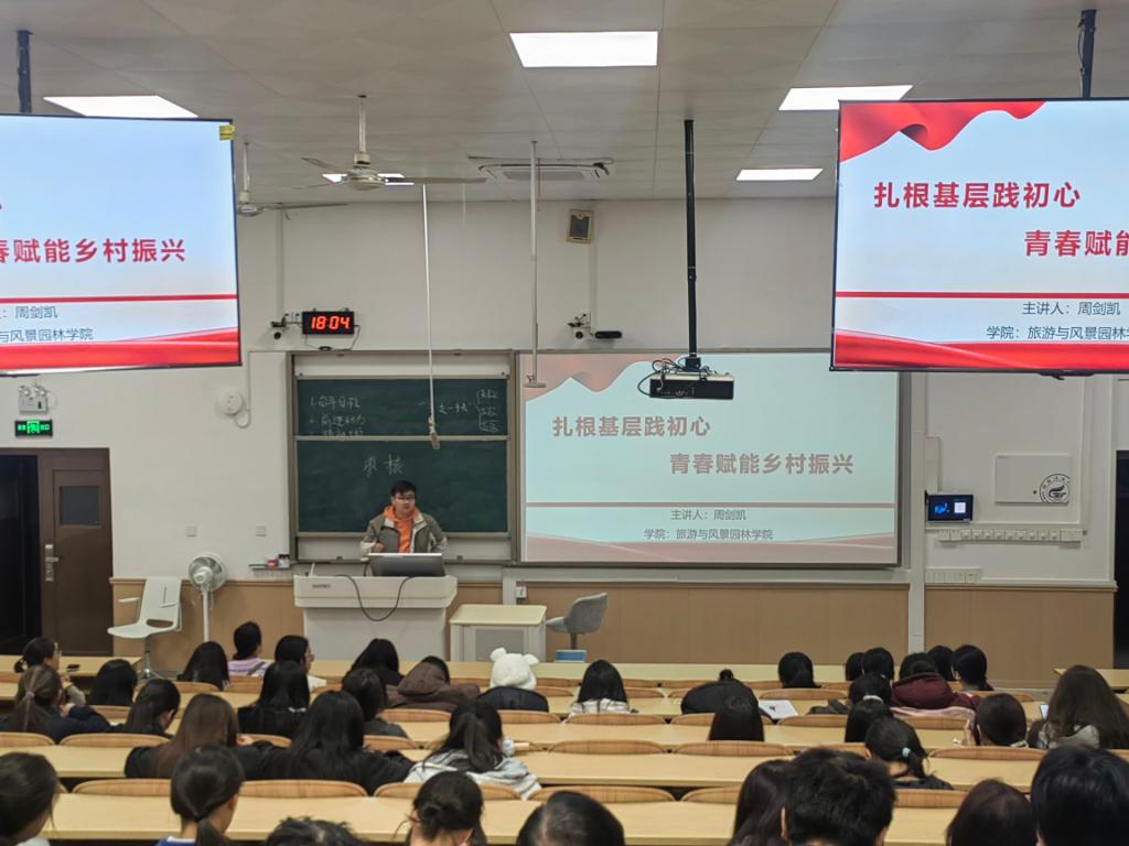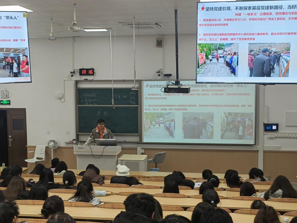 11月29日晚,学院团委书记周剑凯在04620开展“扎根基层践初心 青春赋能乡村振兴”专题团课,深入学习贯彻党的二十大精神,引导青年学子厚植爱农情怀,投身乡村振兴实践。