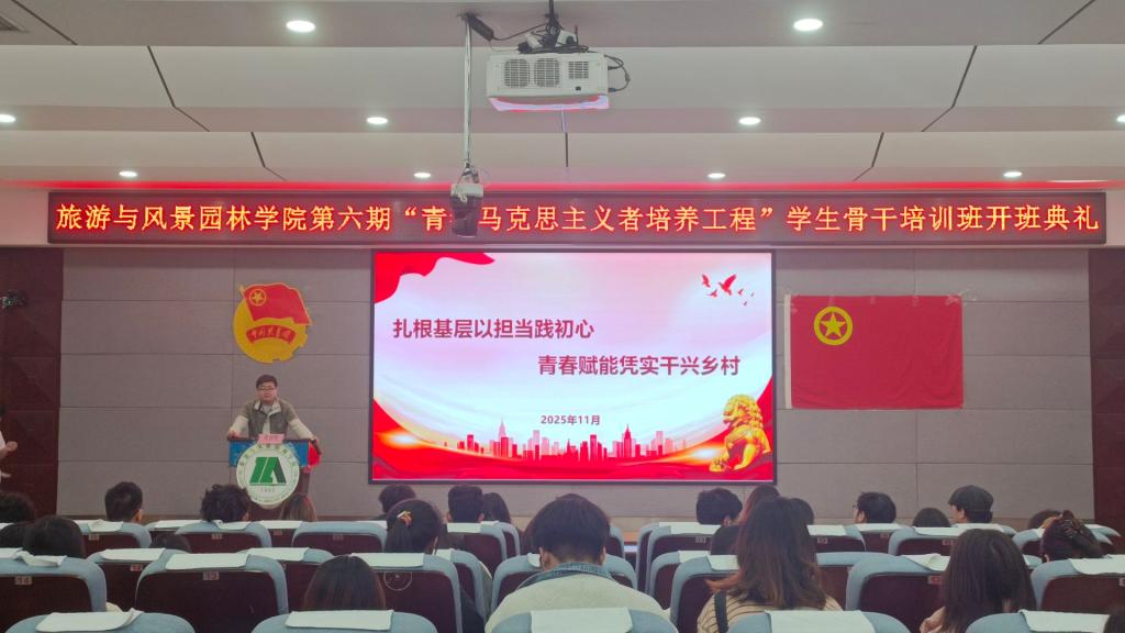 为深入学习贯彻党的创新理论,切实加强我院学生骨干队伍思想政治建设与综合能力培养,11月8日,旅游与风景园林学院第六期“青年马克思主义者培养工程”大学生骨干培训班正式开班。学院团委书记周剑凯、各年级辅导员及110余名培训班学员参加了开班仪式。周剑凯在动员讲话中强调,实施“青马工程”是学院党委落实立德树人根本任务、为党育才的重要举措。