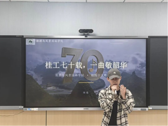 为庆祝我校建校70周年,丰富校园文化生活,展现学子青春风采,4月14日晚,学院“桂工七十载,一曲敬韶华”校园十大歌手选拔赛在05207教室顺利举行,学院党委副书记赵思聪、团委书记周剑凯、辅导员蔡涛担任此次比赛评委。