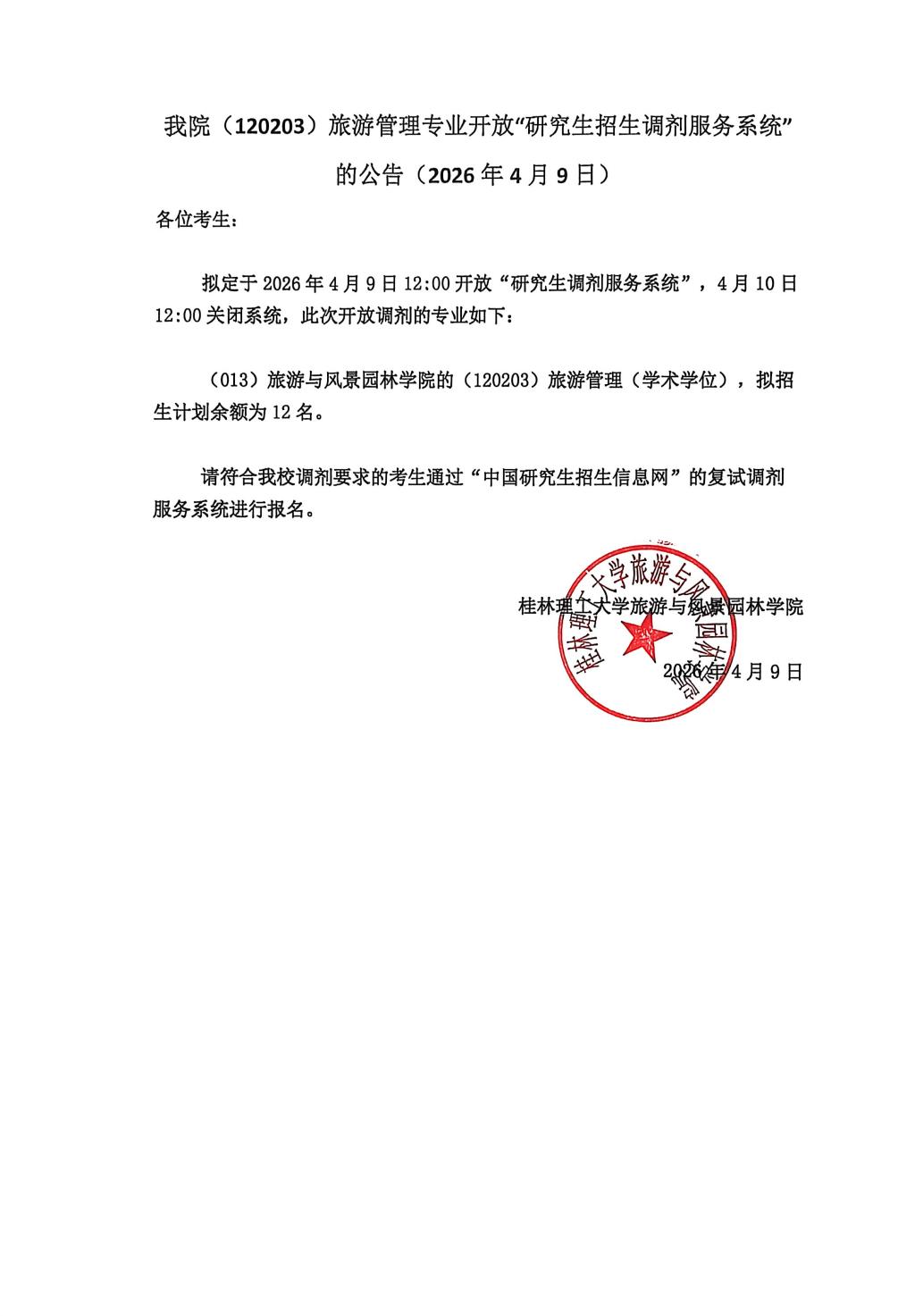 我院(120203)旅游管理专业开放“研究生招生调剂服务系统”的公告