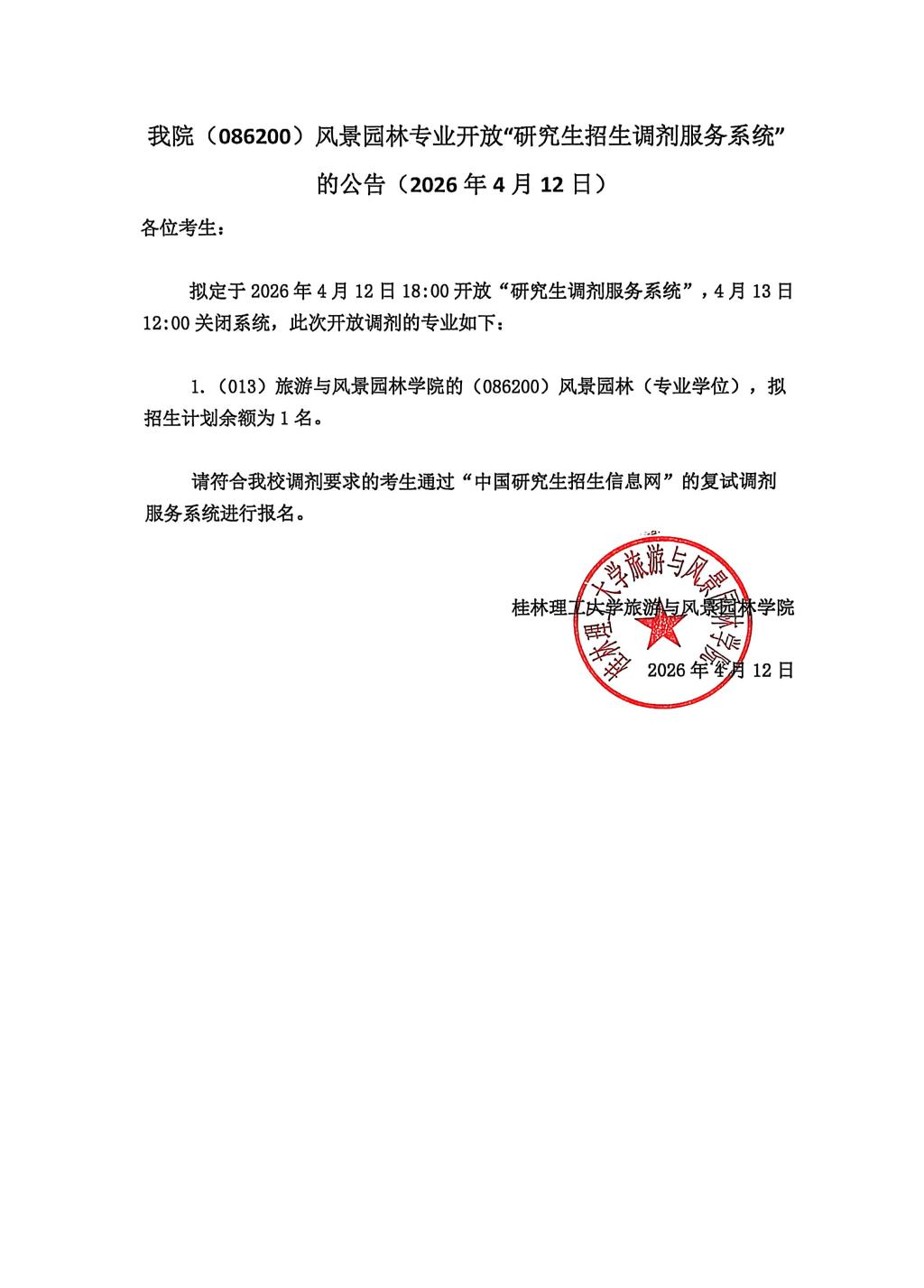 我院(086200)风景园林专业开放“研究生招生调剂服务系统”的公告