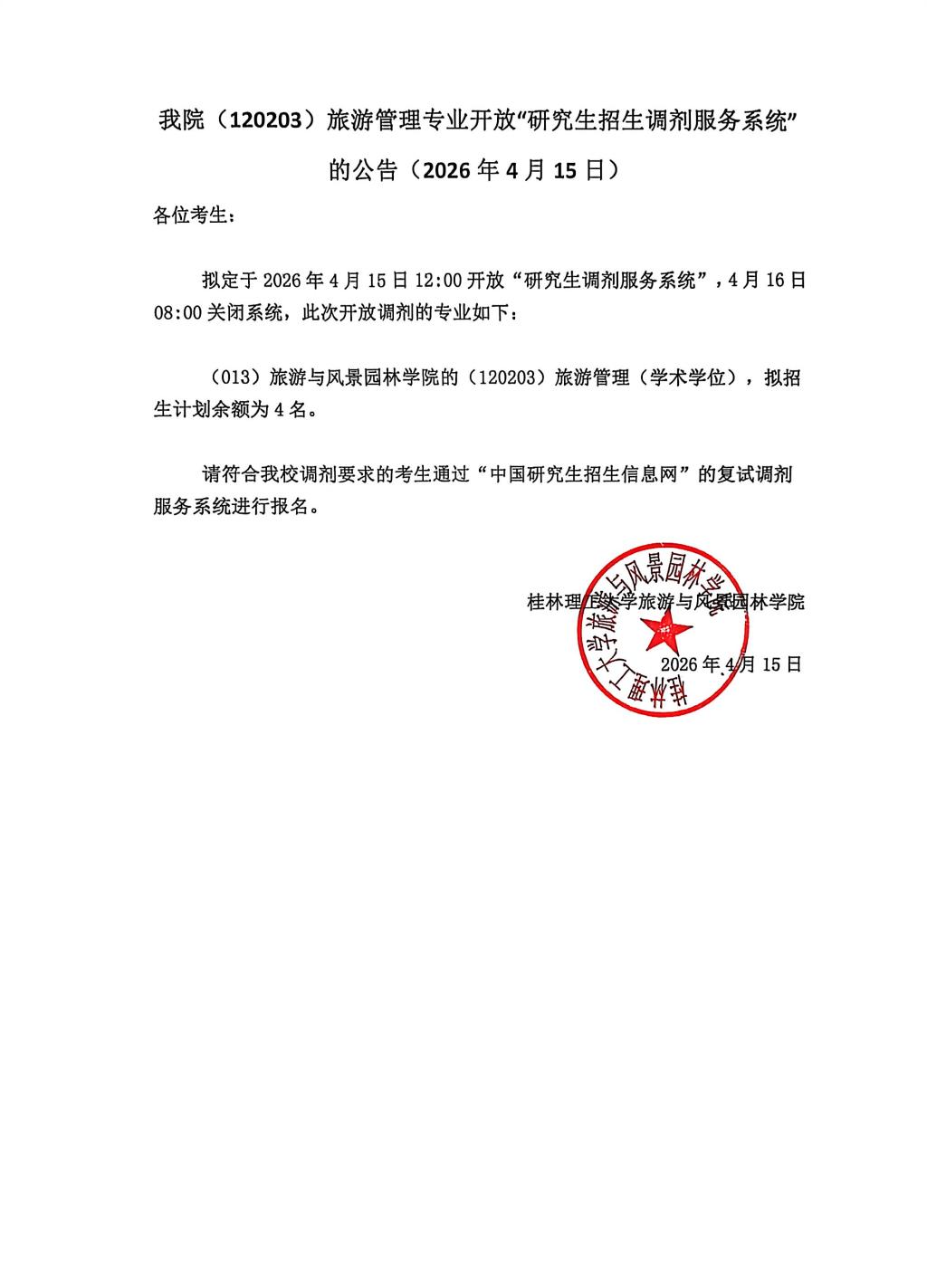 我院(120203)旅游管理专业开放“研究生招生调剂服务系统”的公告